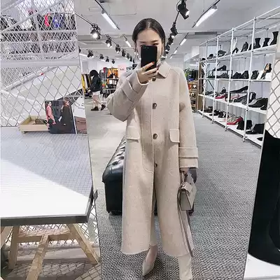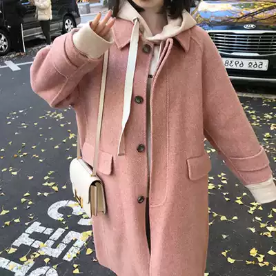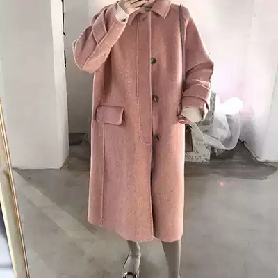 ROUJE POWER high-end pink double-sided cashmere coat women 2021 autumn and winter New medium long version woolen coat