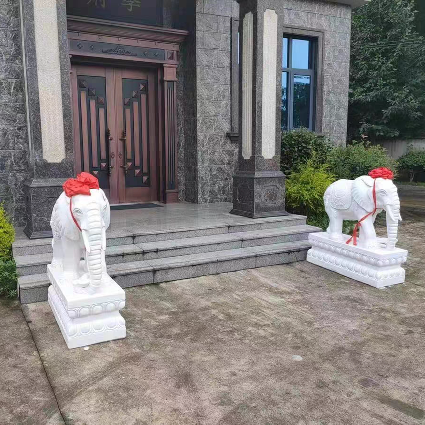 Stone Carving Elephant Pair Home Han White Jade Elephant Hotel Villa Late Xia Red Stone Elephant Courtyard Doorway Stone Sculpture Pendulum