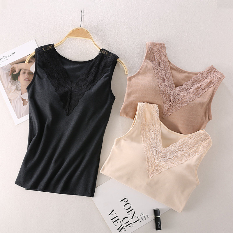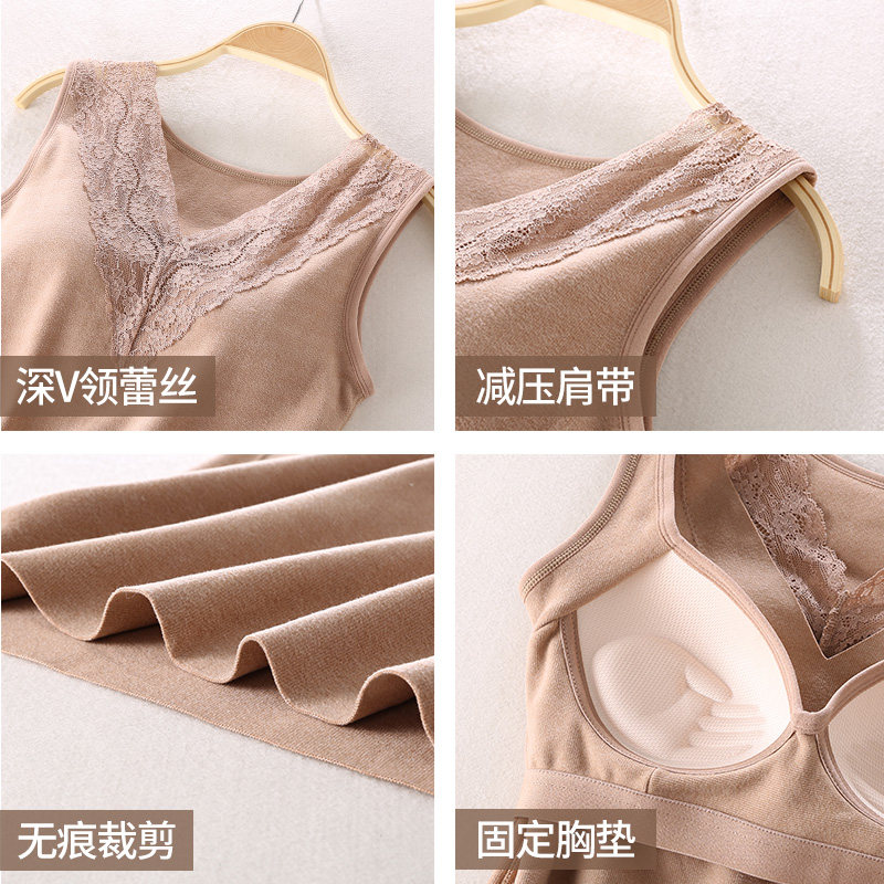 Duvet Traceless Harness Warm Vest Lady Gvet Thickened Winter Anti-Chill Net Red underwear with chest cushion