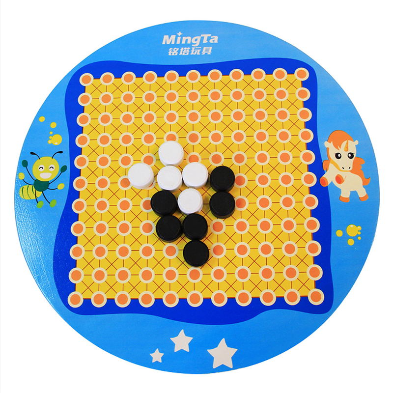 Nameta Wooden Checkers Tabletop Parenting Game Wooden Five Sub Chess Children Puzzle Toys Students Intelligence Bifacial Chess