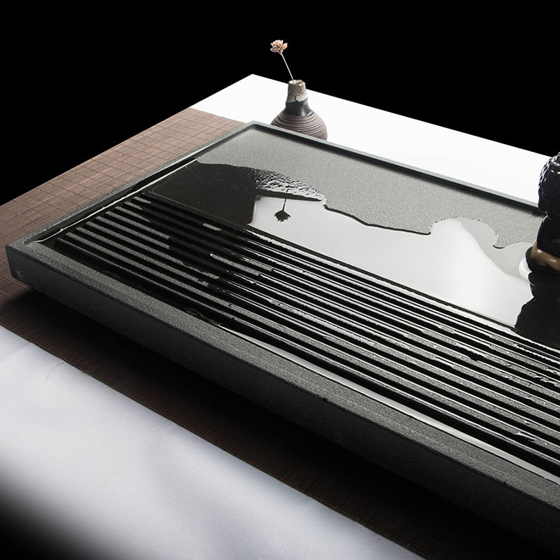 HCNTES natural black gold stone tea tray home living room office simple drainage dry tea modern stone tea table