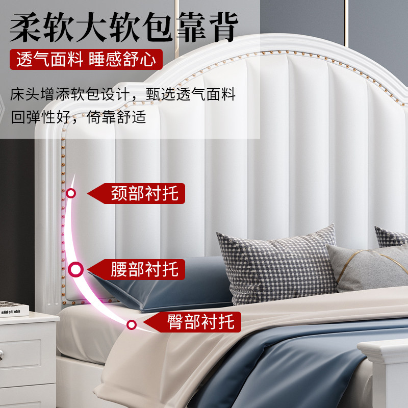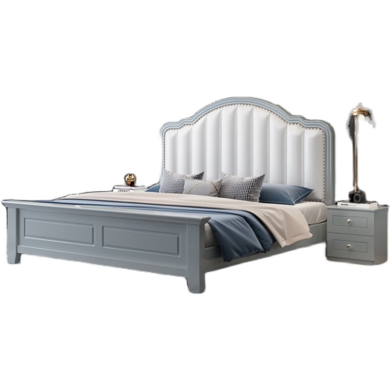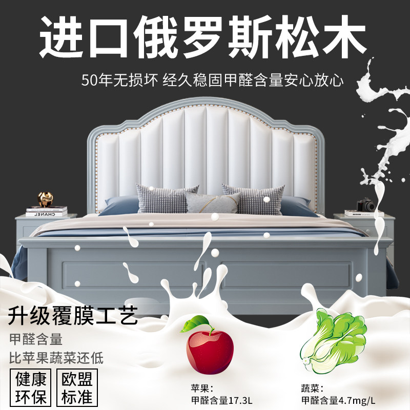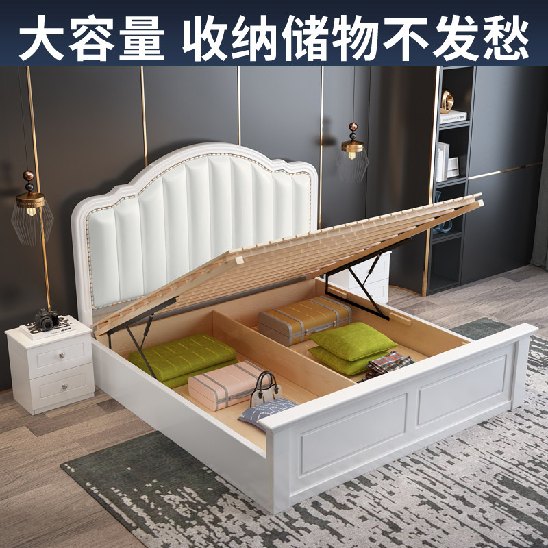American solid wood bed 1 8m European simple double bed 1 5m Light luxury storage bed Small apartment master bedroom single bed