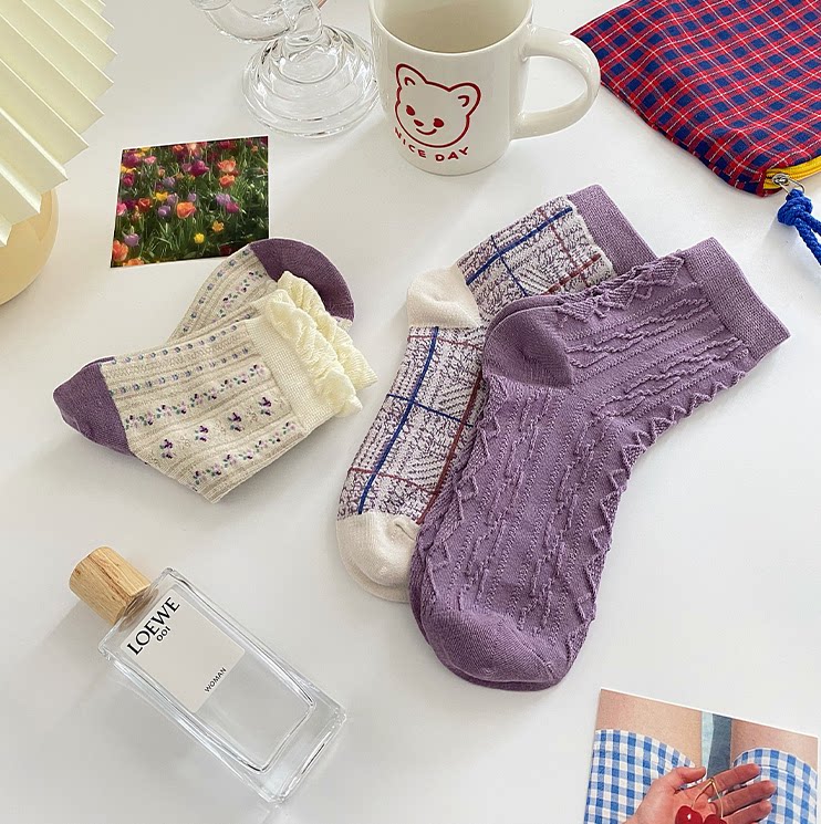 Sweet and purple lace Sox Children ins Chains Lovely 100 lap Winter Long Sox Japanese Sox Korean students in the middle of the day