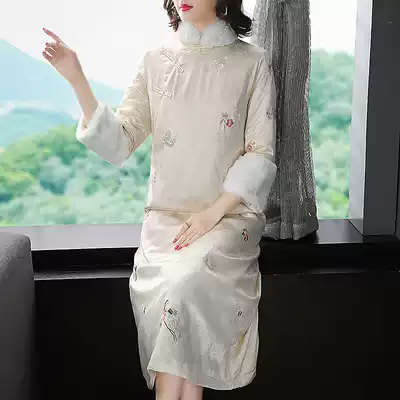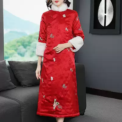 Tang women's winter clothes retro Chinese cotton-padded clothes women's long version of temperament thickened warm and improved cheongsam dress