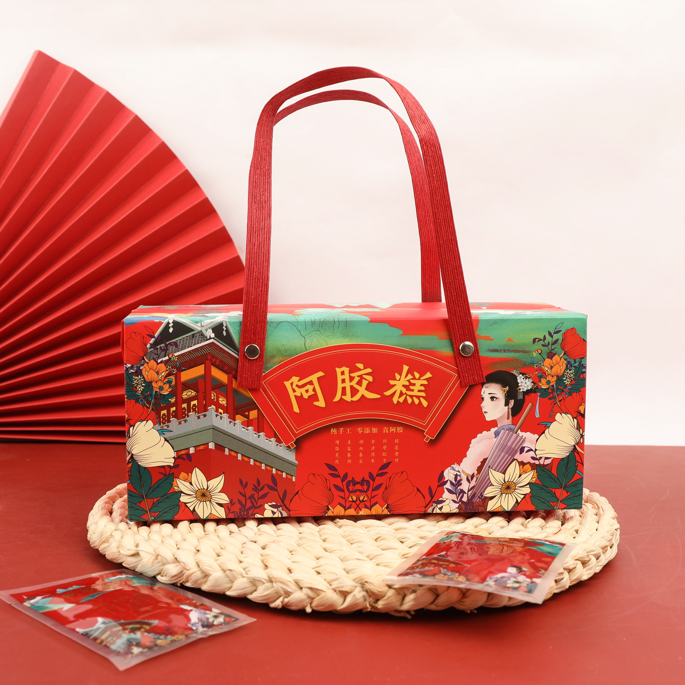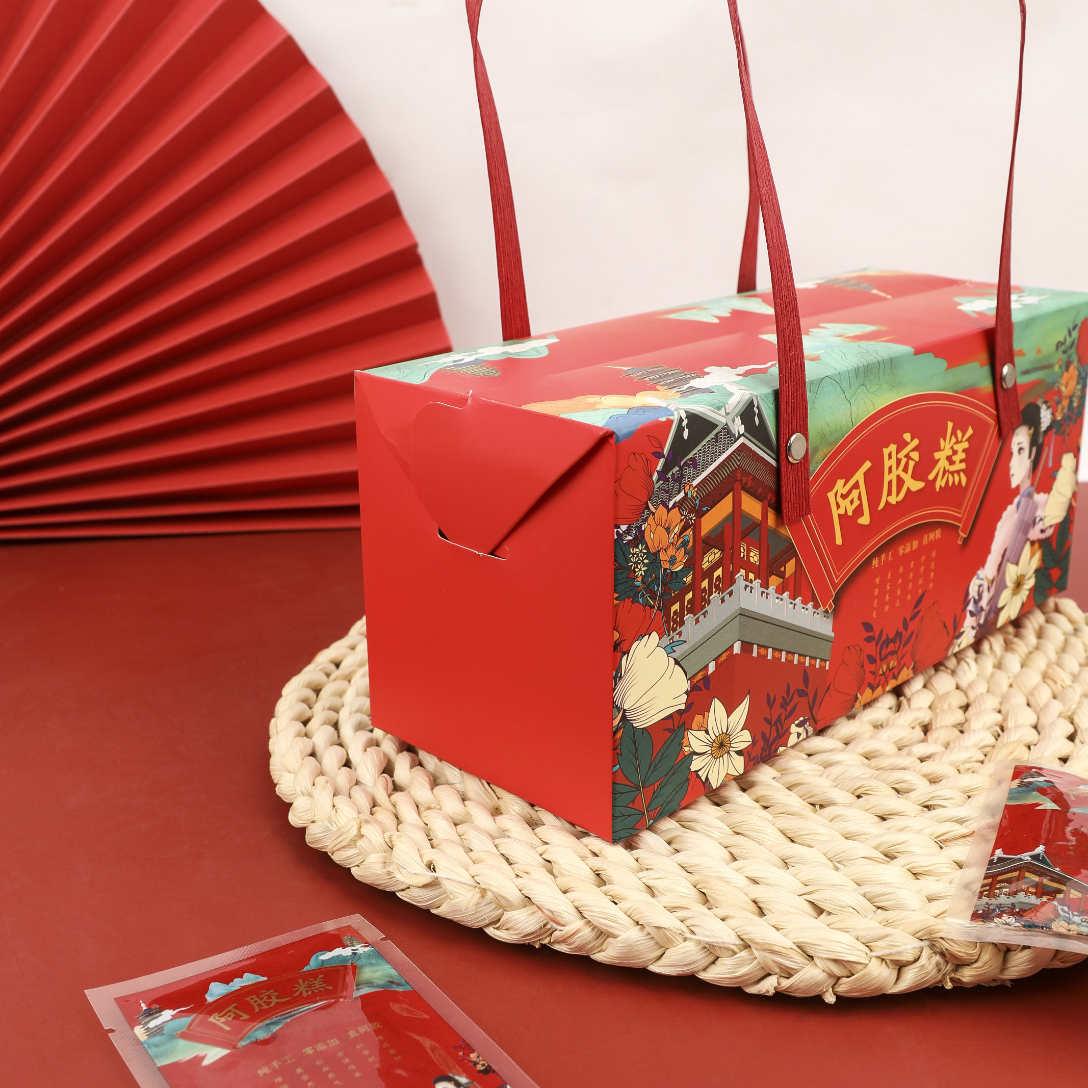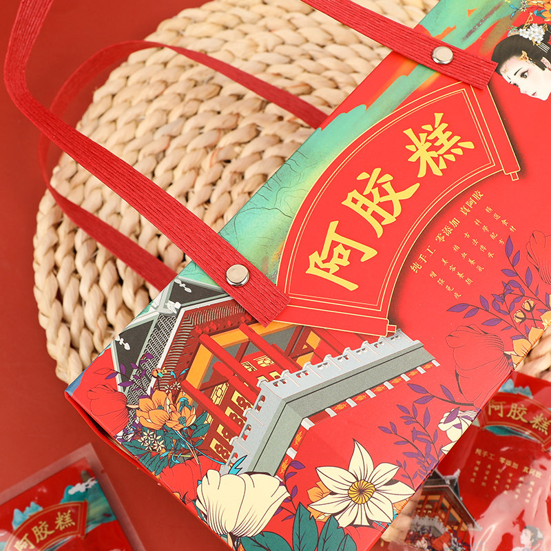 High-end court style donkey-hide gelatin cake packaging portable box 250g handmade creative gift box spot customization