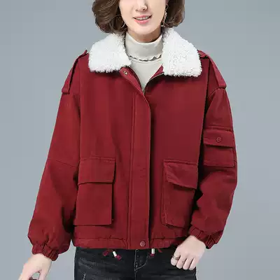 Cotton plus velvet thick coat women 2021 Winter wear new lamb wool collar cotton short version leisure style to overcome cotton jacket