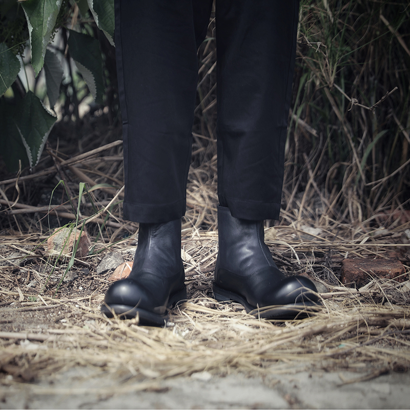 Chelsea men's boots Japanese retro leather big head high-top leather shoes dark Yamamoto style niche short boots for men