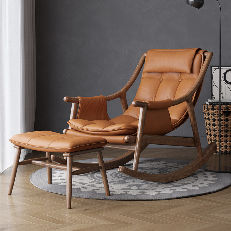 Nordic solid wood rocking chair home single rocking chair light luxury sofa lazy recliner nap chair balcony leisure chair