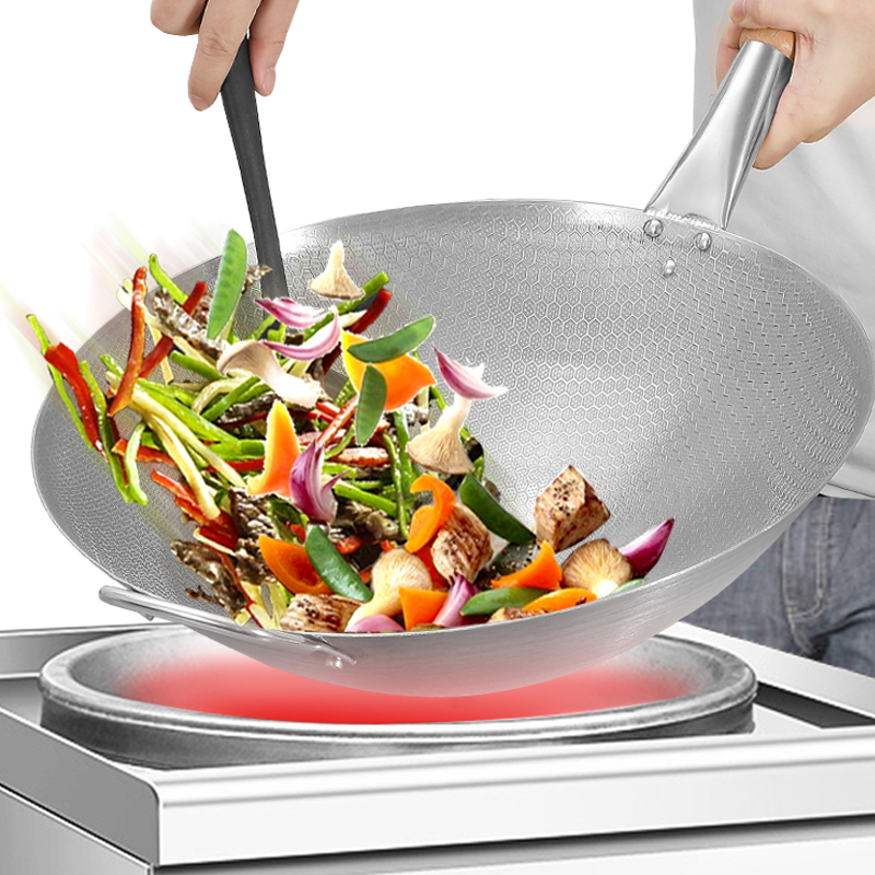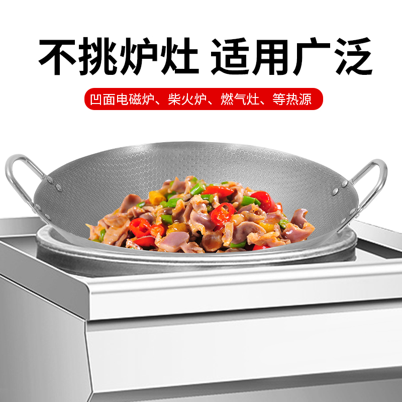 Commercial Concave Oven Stainless Steel Frying Pan Hotel Chefs Special Iron Pan Frying Pan Double Ear Stir-fry Frying Pan