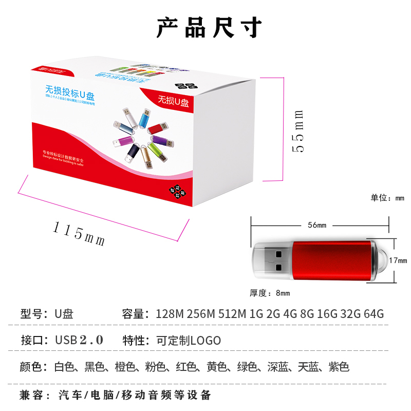 (10 boxed clothes) No distortion bid 1g Small capacity with body disc 128mb512M 2g4g U pan 8GBUSB customized with the body