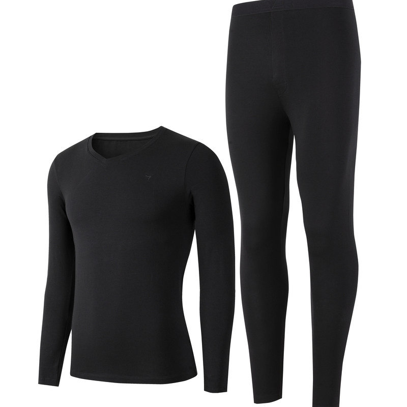 Lacquered men's clothing needle spinning elastic pro-skin round collar men's thermal underwear suit