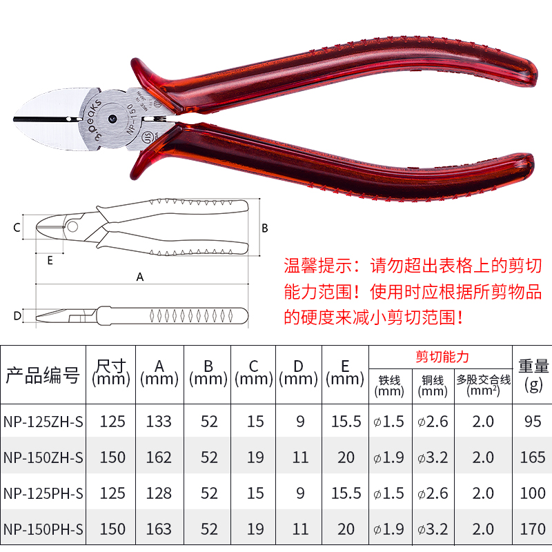 NP-125PH-S diagonal nozzle pliers (125mm5 inch) NP-125ZH-S diagonal nozzle pliers (125mm5 inch) NP-150PH-S diagonal nozzle pliers (