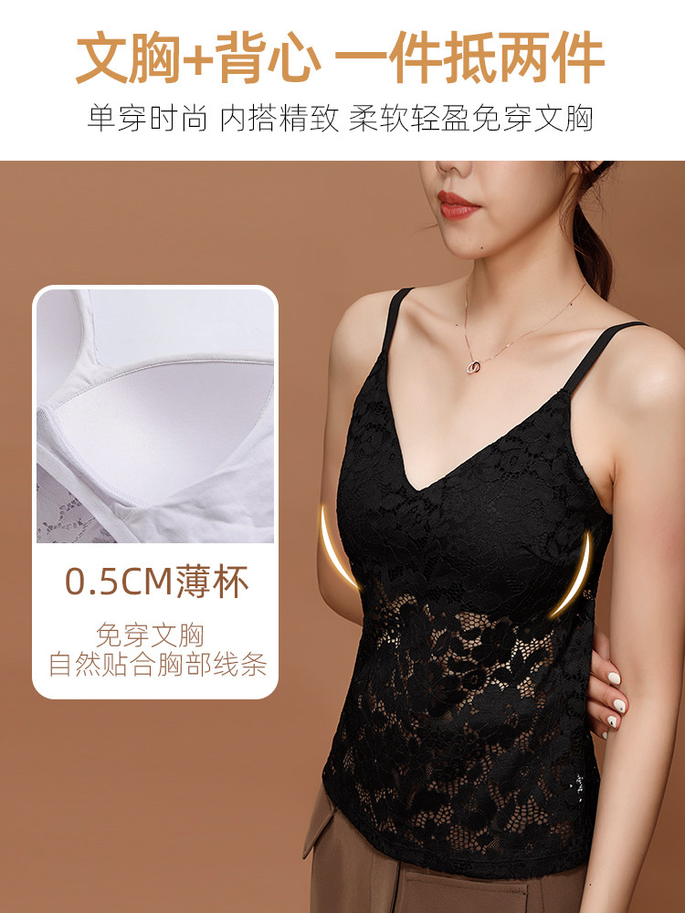 Summer new French vest women's suspenders wear sexy inner lace underwear with chest pad bra one-piece thin