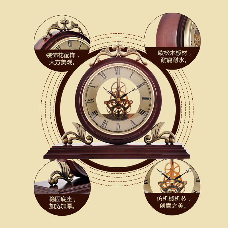 European style creative sitting clock Modern living room solid wood seat clock Silent bedroom seat clock clock ornaments Office retro clock