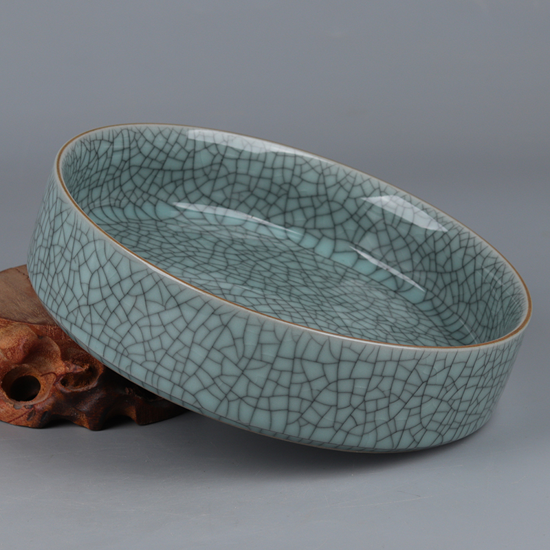 Longquan Celadon imitation Ge kiln gray glaze open piece shallow pen Wash Narcissus pot tea wash slag bucket Antique porcelain do old antiques