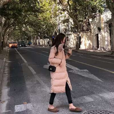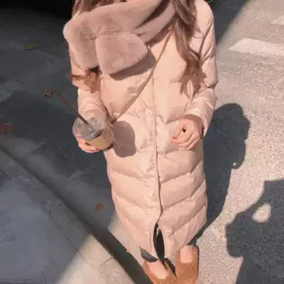 Cotton-padded clothing female winter long version Korean student pink little man slim slim slim lapel cotton jacket over knee cotton coat