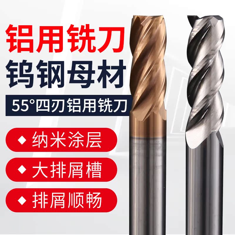55-degree aluminium use milling cutter 4-edge selected tungsten steel alloy coarse milling cutter edge coated chamfer round handle CNC central cutter