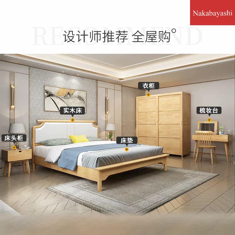 2020 Nordic style solid wood bed 18 meters double bed simple modern 15 meters small sized apartment master bedroom oak bed