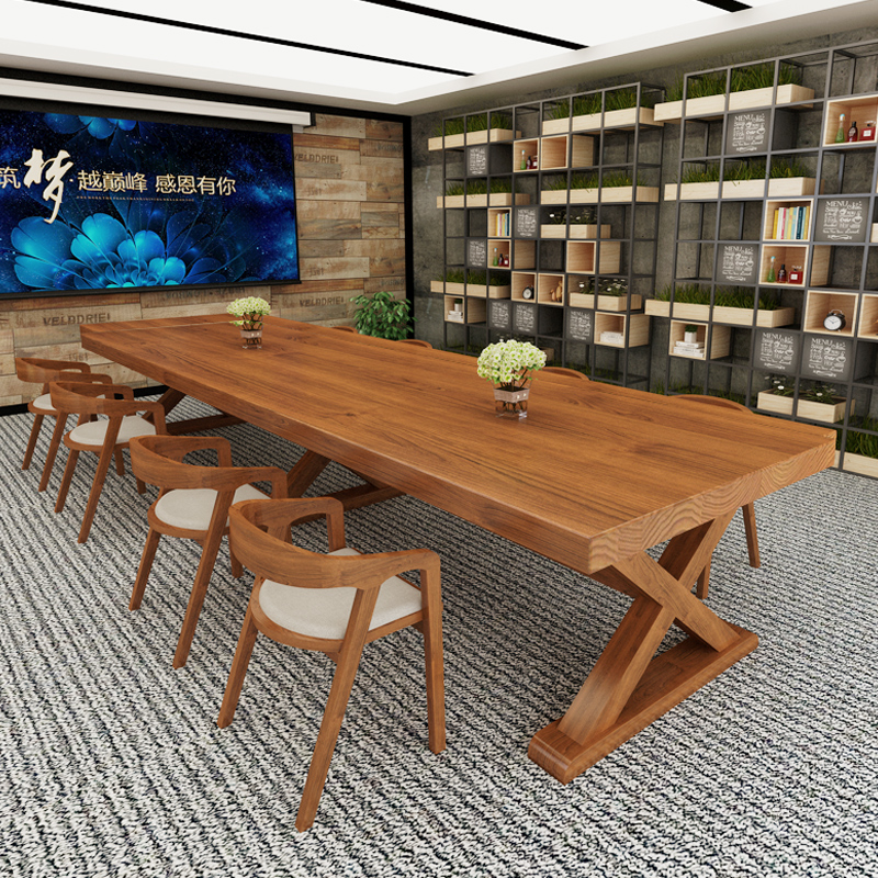 Large solid wood conference table log large board long table simple desk long strip training table negotiation table and chair combination
