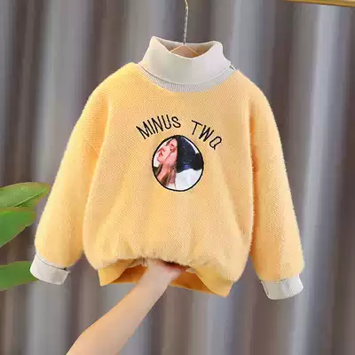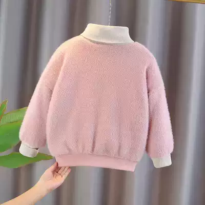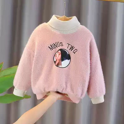 Girls sweater autumn and winter 2020 new mink velvet children's sweater plus velvet children Girls base shirt high collar