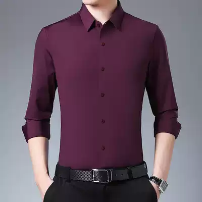 2021 spring and autumn high-end mulberry silk long-sleeved shirt men's middle-aged business casual silk high-end ironing-free shirt