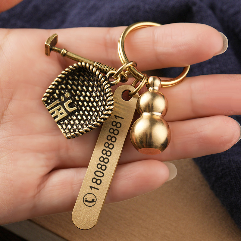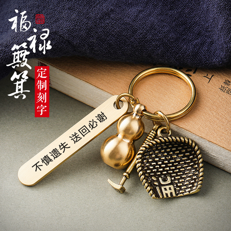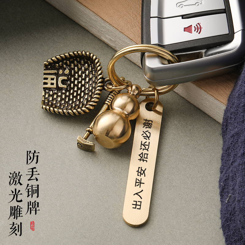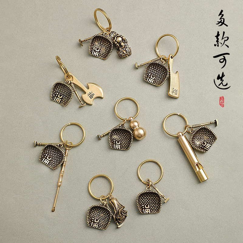 Pure Brass Small Plinth CAR KEY BUCKLE PENDANT PENDANT CHAIN WOMEN RING RING ANTI-THROW Dustpan Pendant Lettering man-Taobao