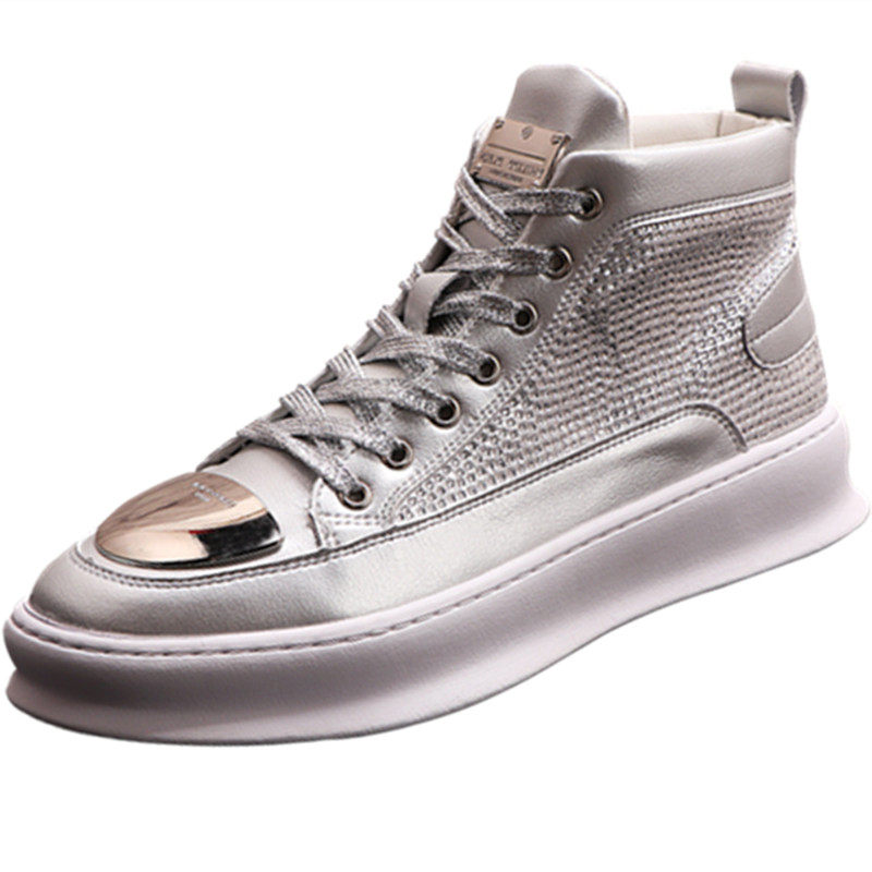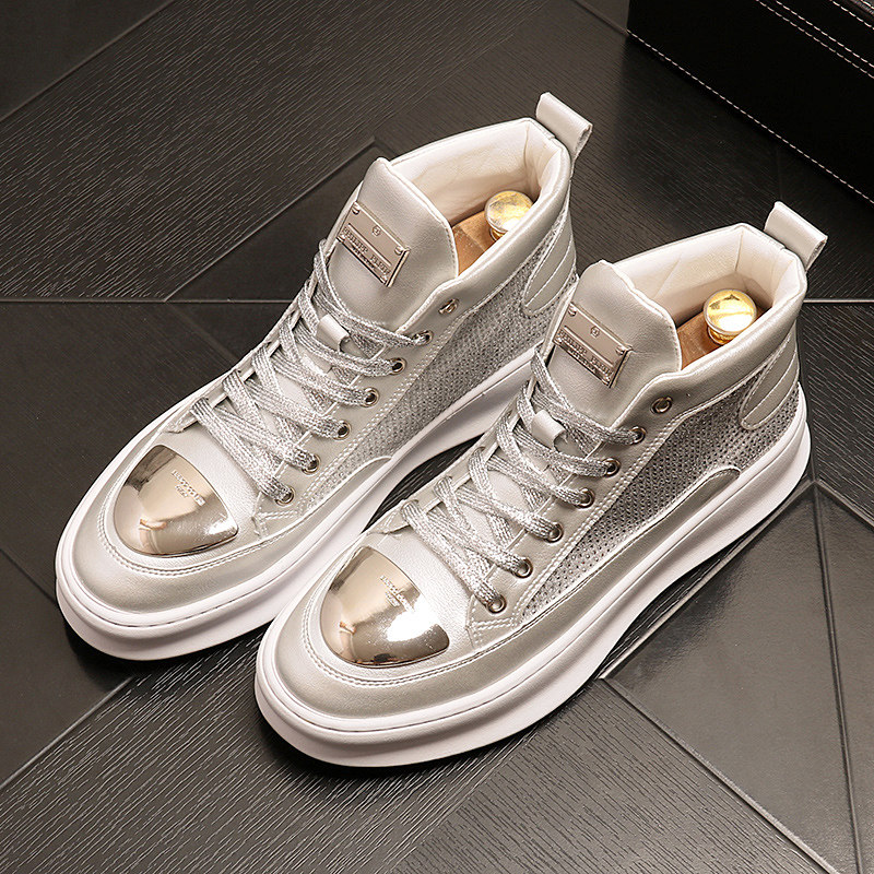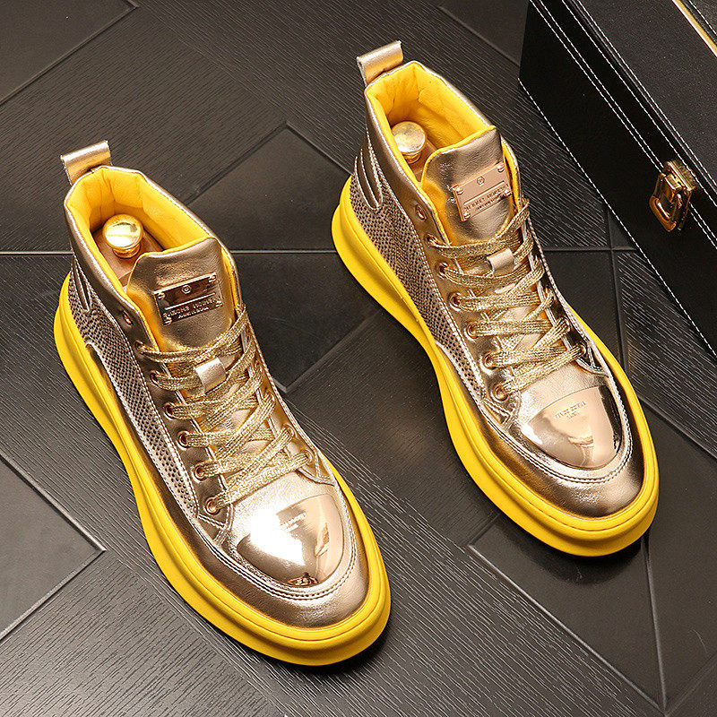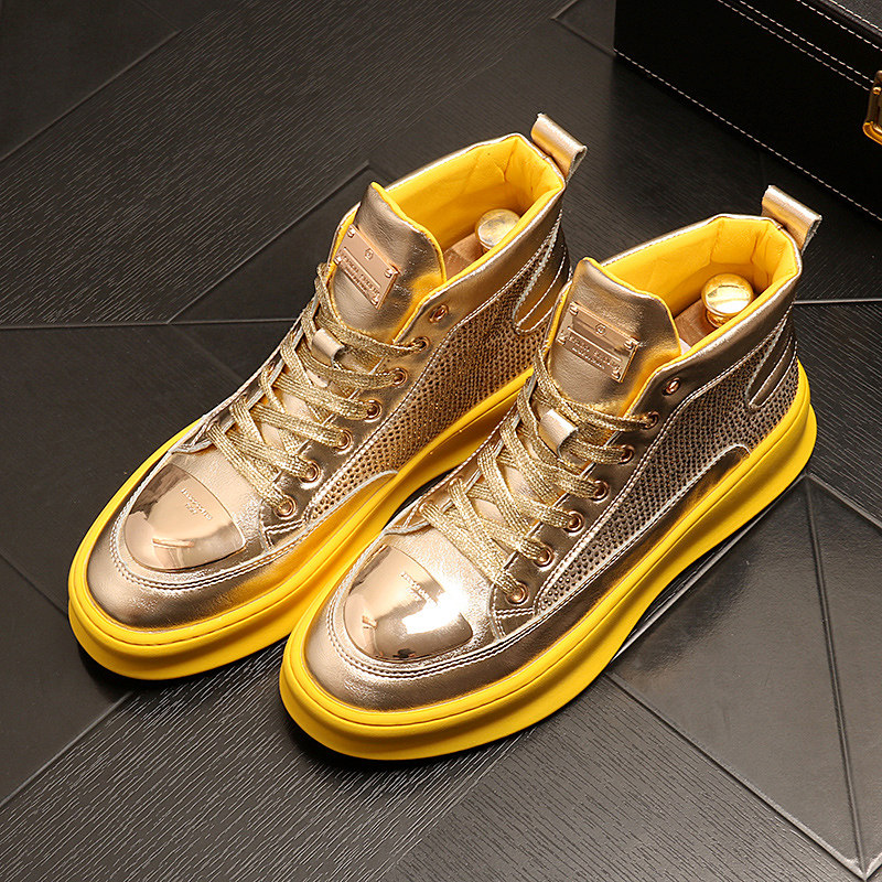 European station men's shoes golden high-top Martin boots men's Korean version of all-match fashion personality rhinestone hair stylist trendy shoes autumn