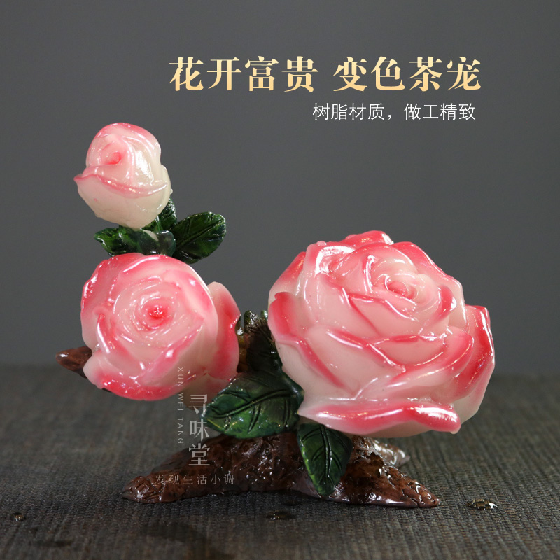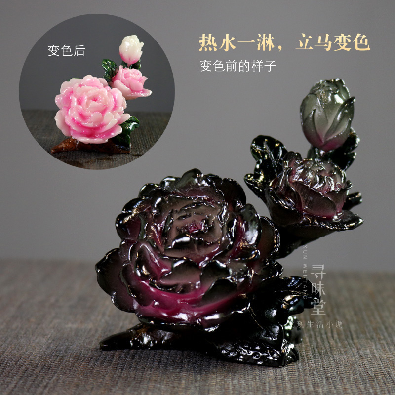 Blossom rich color change tea pet | new creative resin tea play peony lotus personality tea plate tea ceremony trinket