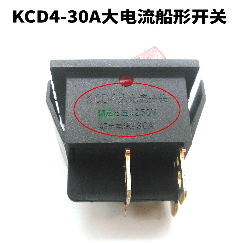 30A high-current boat-shaped switch KCD4 2 7 boat-shaped rocker power switch 220V silver point single gear with light 4 feet