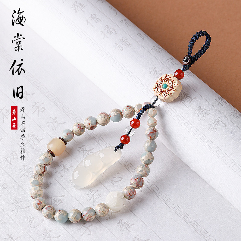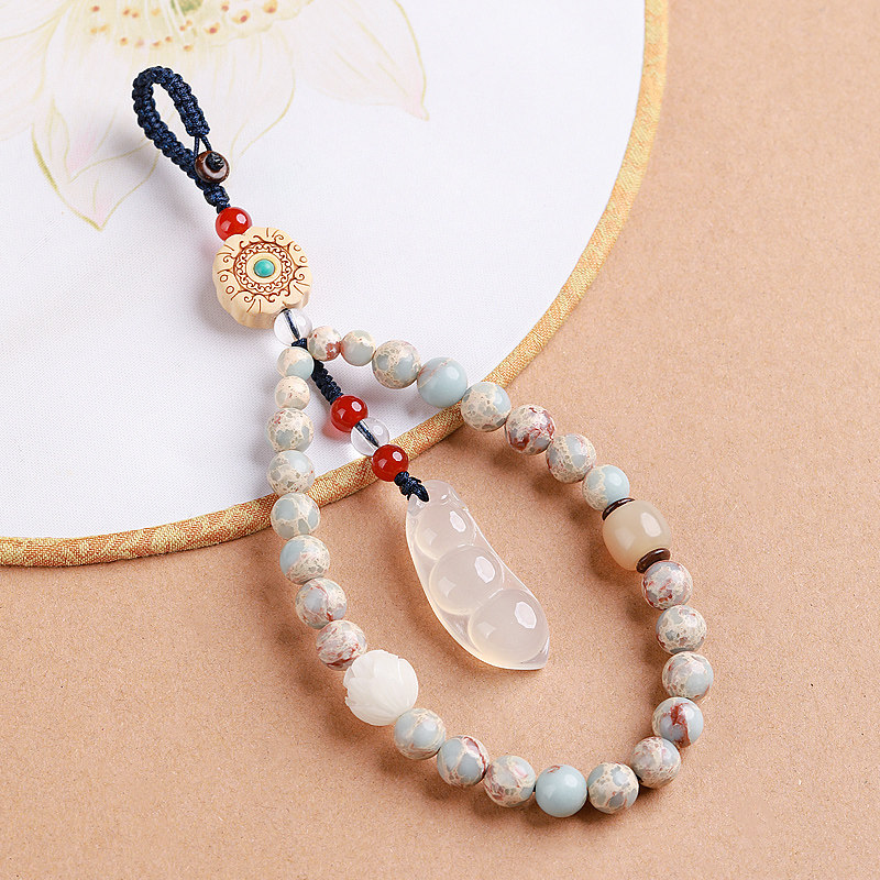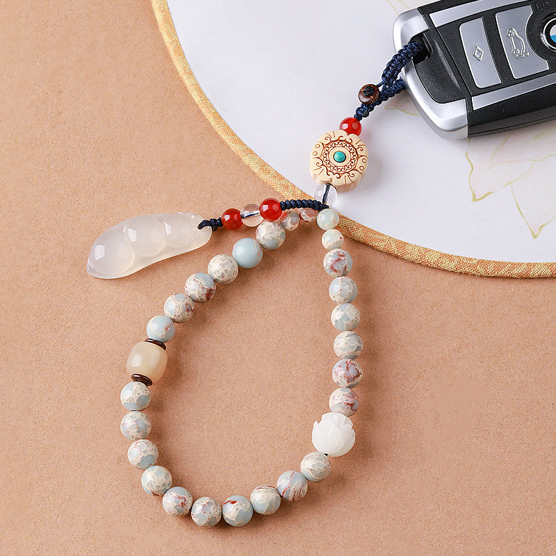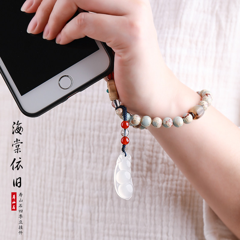 Jade Medullary Green Bean Car Key Buckle Pendant Short wrist pendant female delicate Bodhi mobile phone sling shell hanging ornament rope