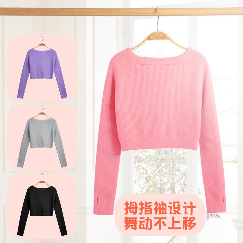 Autumn and winter dance sweater Children's one-word collar practice sweater Long-sleeved knitted jacket outside the girl dancing shawl