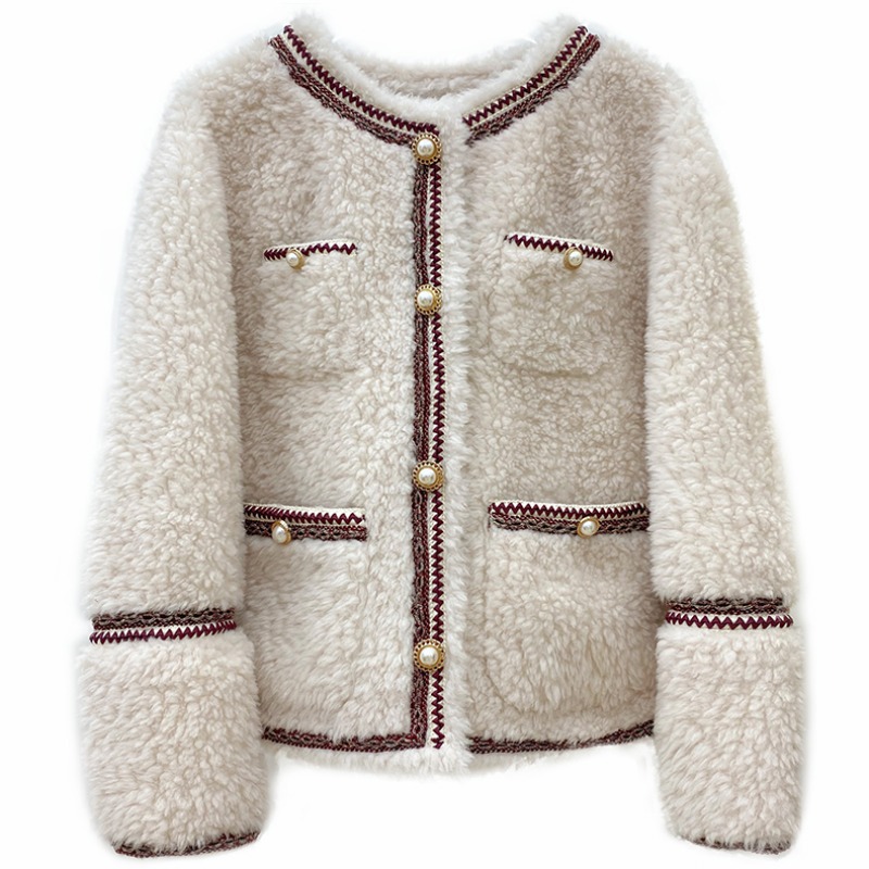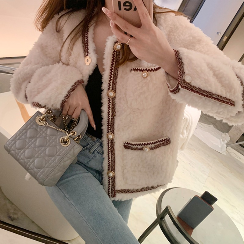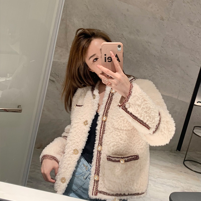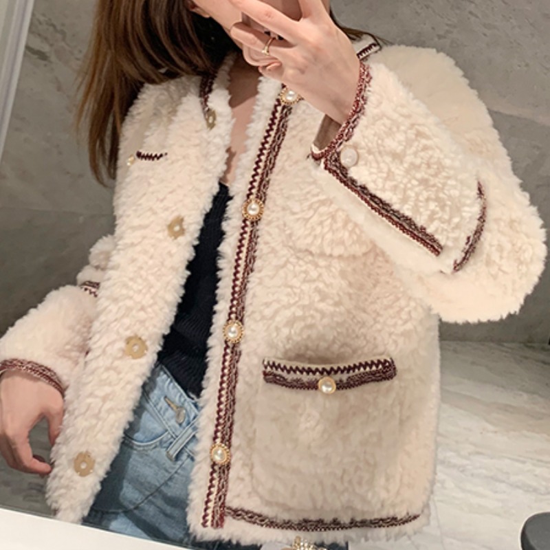 Sanskrit small fragrant wind lamb fur coat female winter short leather fur integrated small sub white name yuanpi grass sheep cut cashmere