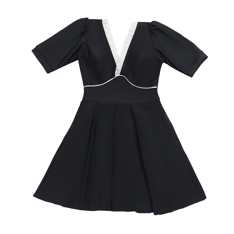 2021 new ruffle short-sleeved conservative thin slim belly cover-up dress style student holiday spa swimsuit female