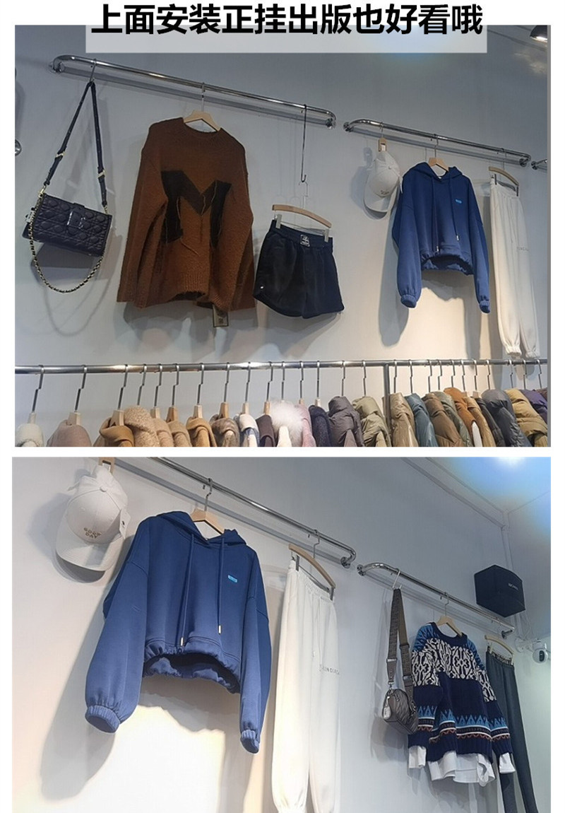 Clothing store hangers on the wall shelf display stand stainless steel brushed front hanging side rack Net Red simple clothes shelf