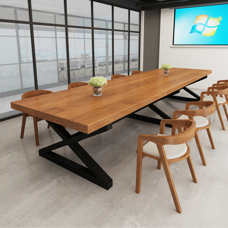Solid Wood table 8 people long tableloft industrial wind long tablereception room table and chair combined office furniture