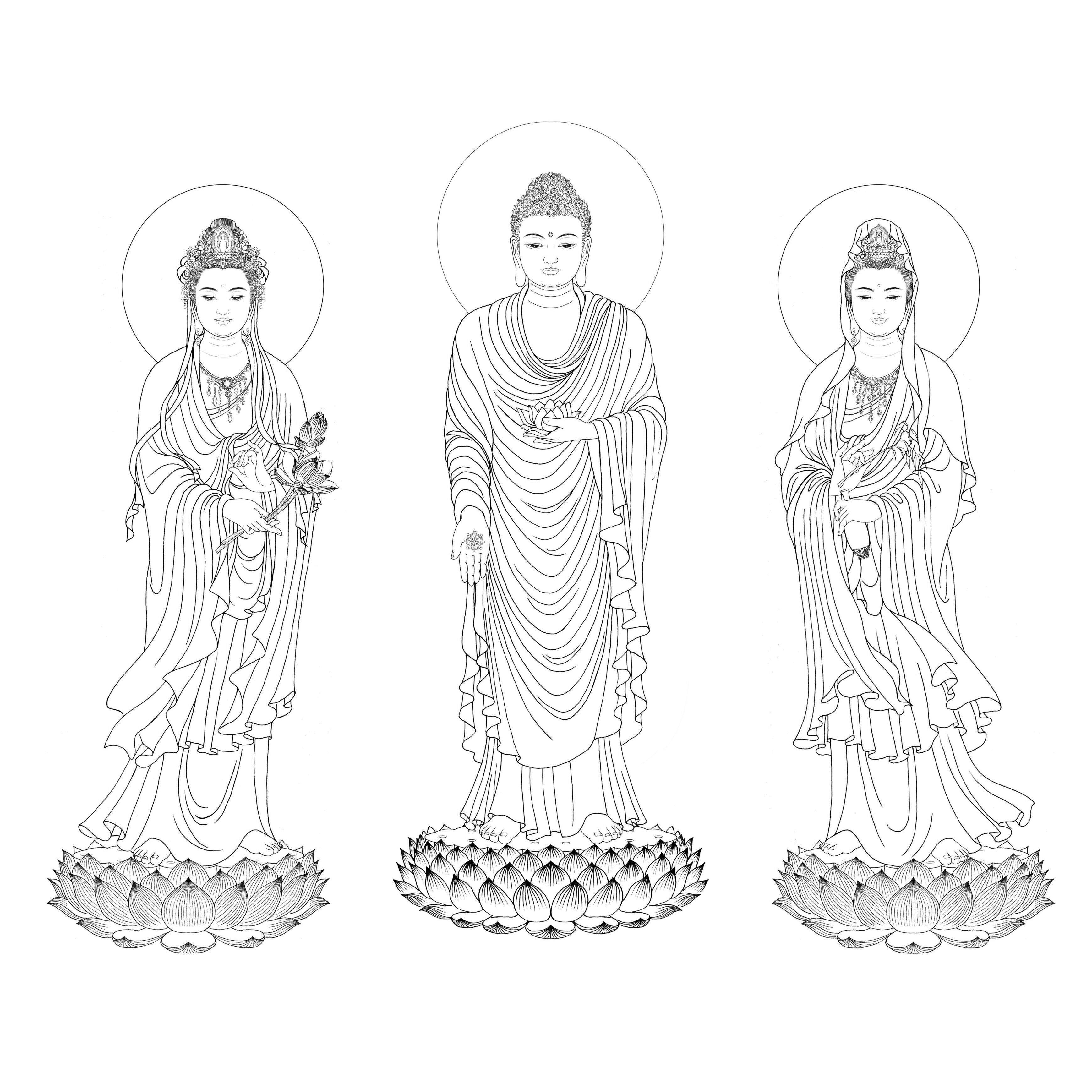 Amitah Buddha White Description Sketch with gold pen core color pen bag is like a fine bond
