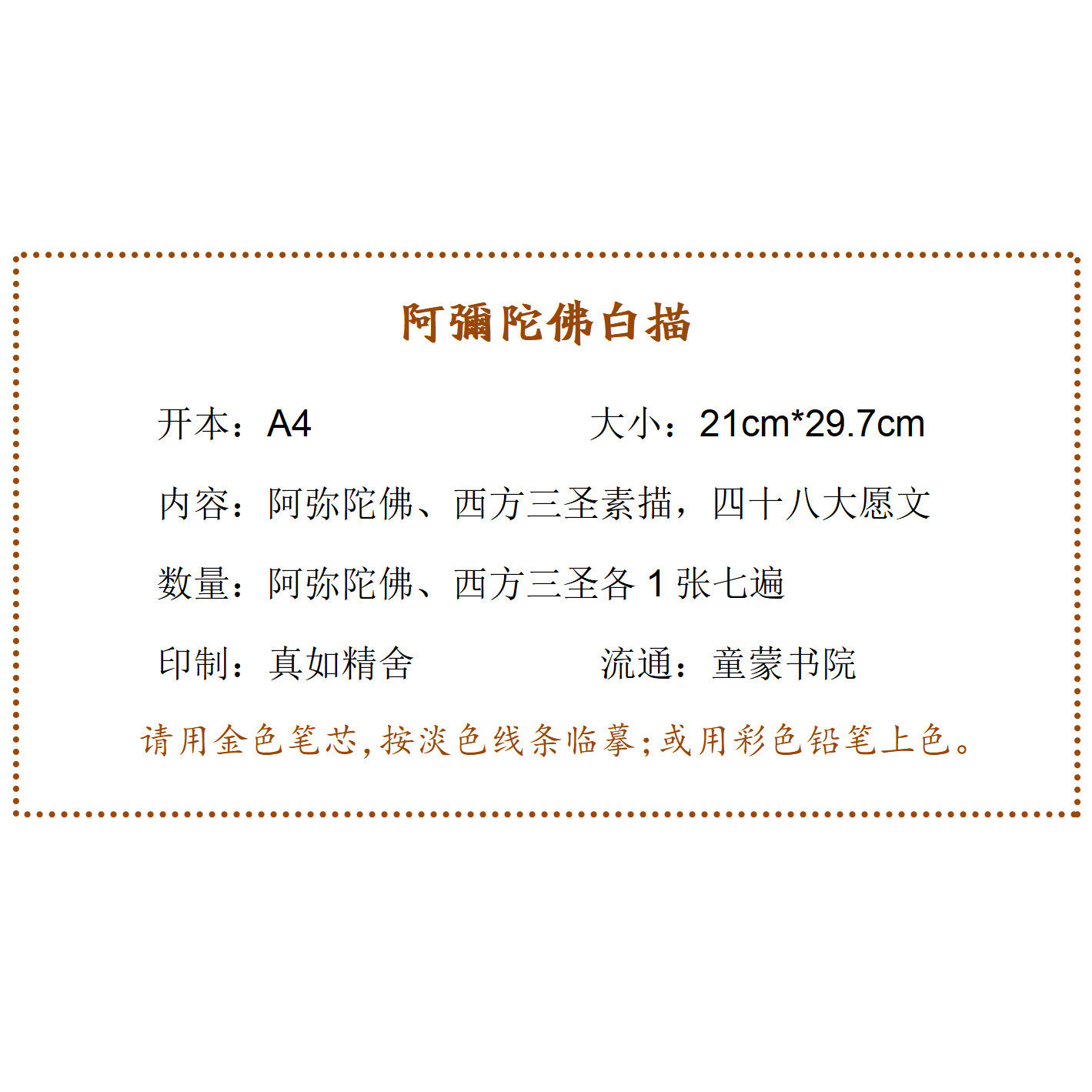 Amita Buddha White Description 12 core 12 color lead Western San Saint A4 color chart has been plastic of Amitar Buddha A4 version