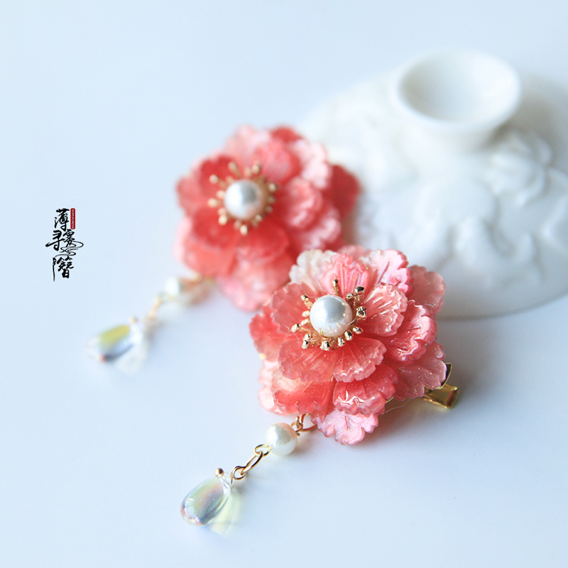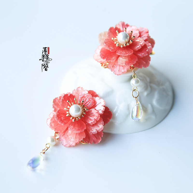 Mist hairpin handmade Hanfu headdress multi-layer peony accessories pair clip ancient style step shake tassel hairpin small flower hairpin