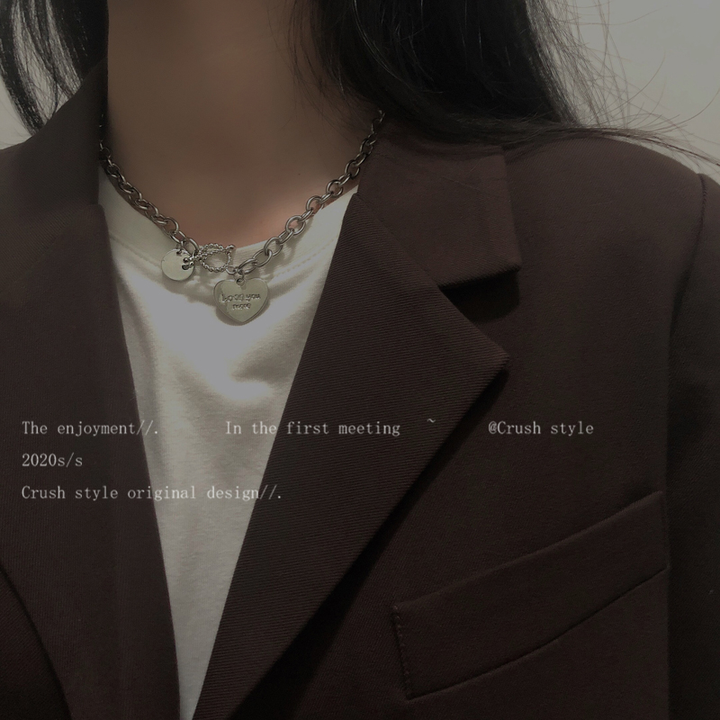 Titanium steel non-fading heart thick chain necklace women's summer 2021 new trendy cool hip-hop sweater chain simple accessories