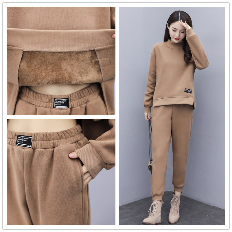 Thickened Gushed Casual Sports Suit Woman 2020 Winter Clothing Cotton slim Exercise Running tracksuit Two sets