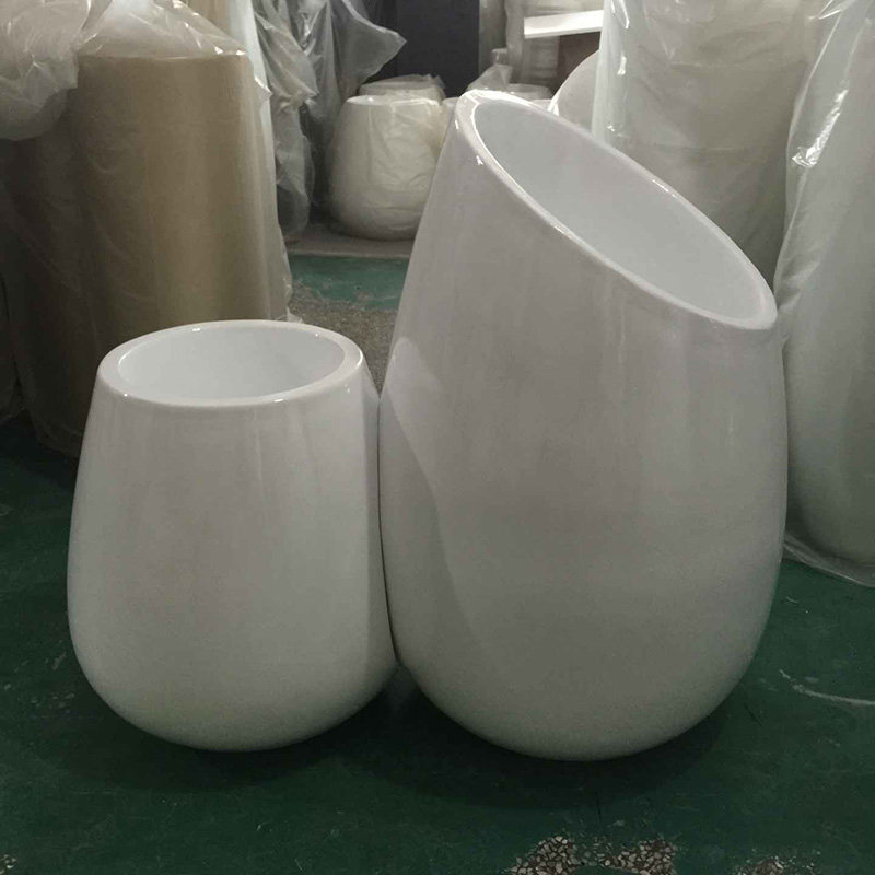 Nordic high-grade brushed FRP floor planter Shopping mall outdoor large flower bowl shaped vase combination household ornaments