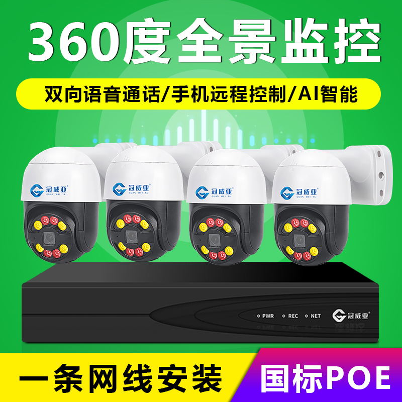 HD monitoring equipment set Outdoor supermarket home breeding night vision 4-way complete set of wired POE camera 360
