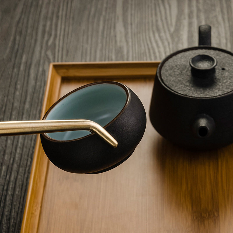 "Copper Words" Tea Clip Copper Single Simple Household Tea Ceremony Six Gentlemen Kung Fu Tea Set Accessories Tea Cup Tea Clip
