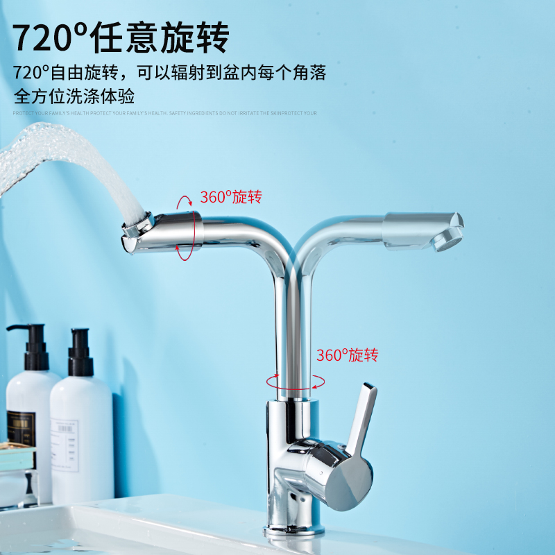Washbasin hot and cold 2-in-1 faucet bathroom rotatable mixing valve full copper wash basin wash single cold faucet