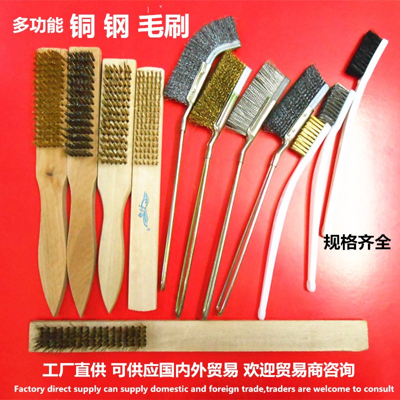Oven cleaning copper plated wire brush hardened wire brush (aluminum plate) stainless steel wire brush aluminum plate encrypted copper wire brush wooden handle