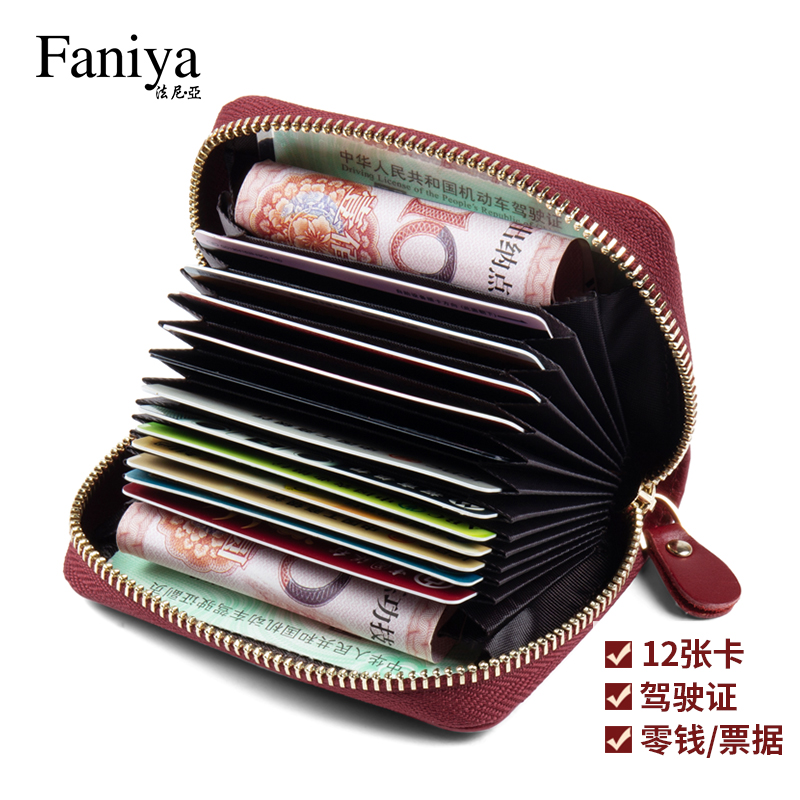 Card bag Women's genuine leather Large capacity Multi-clamping delicate ultra-thin and small upscale driver's certificate package with small card holder