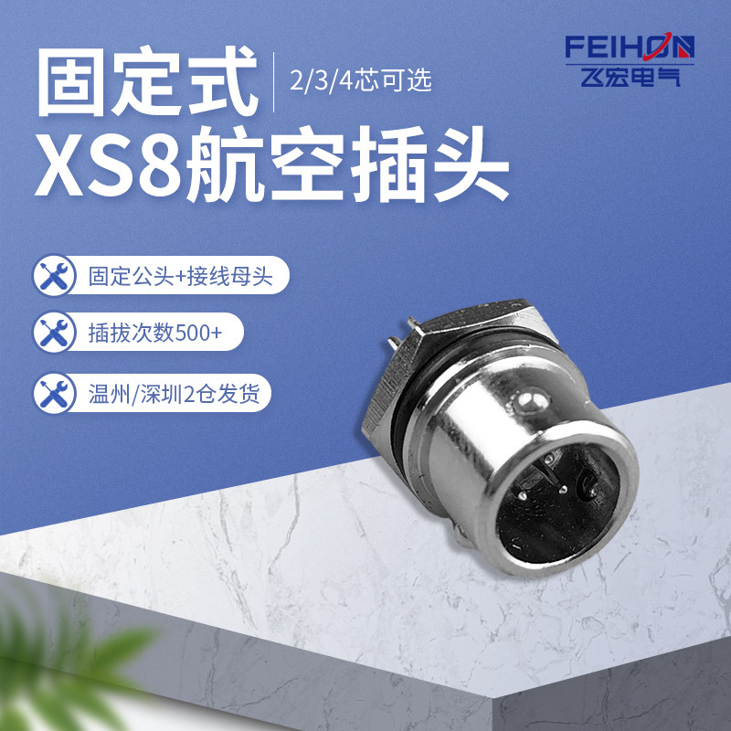 Air plug XS8K-2 Core 3 Core 4 Core hole pin connector 8mm push-pull Air socket copper core gold plated