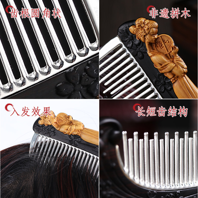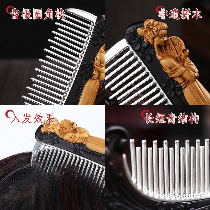 999 Pure Silver Comb Full Pan Mo Scraping of Elegant Sandalwood Silver Comb Snowflake Silver Comb Silver Decorated Gifts To Girlfriend