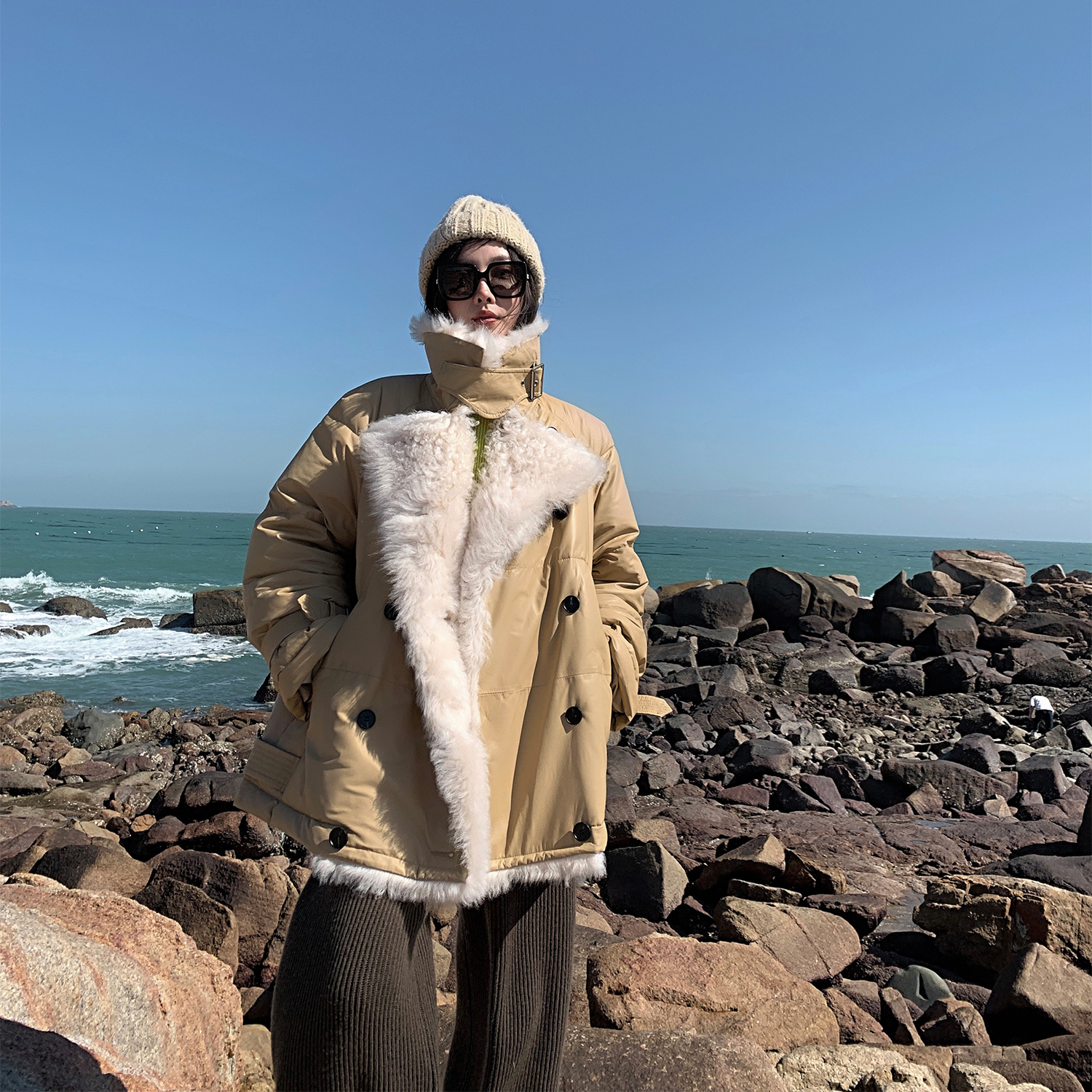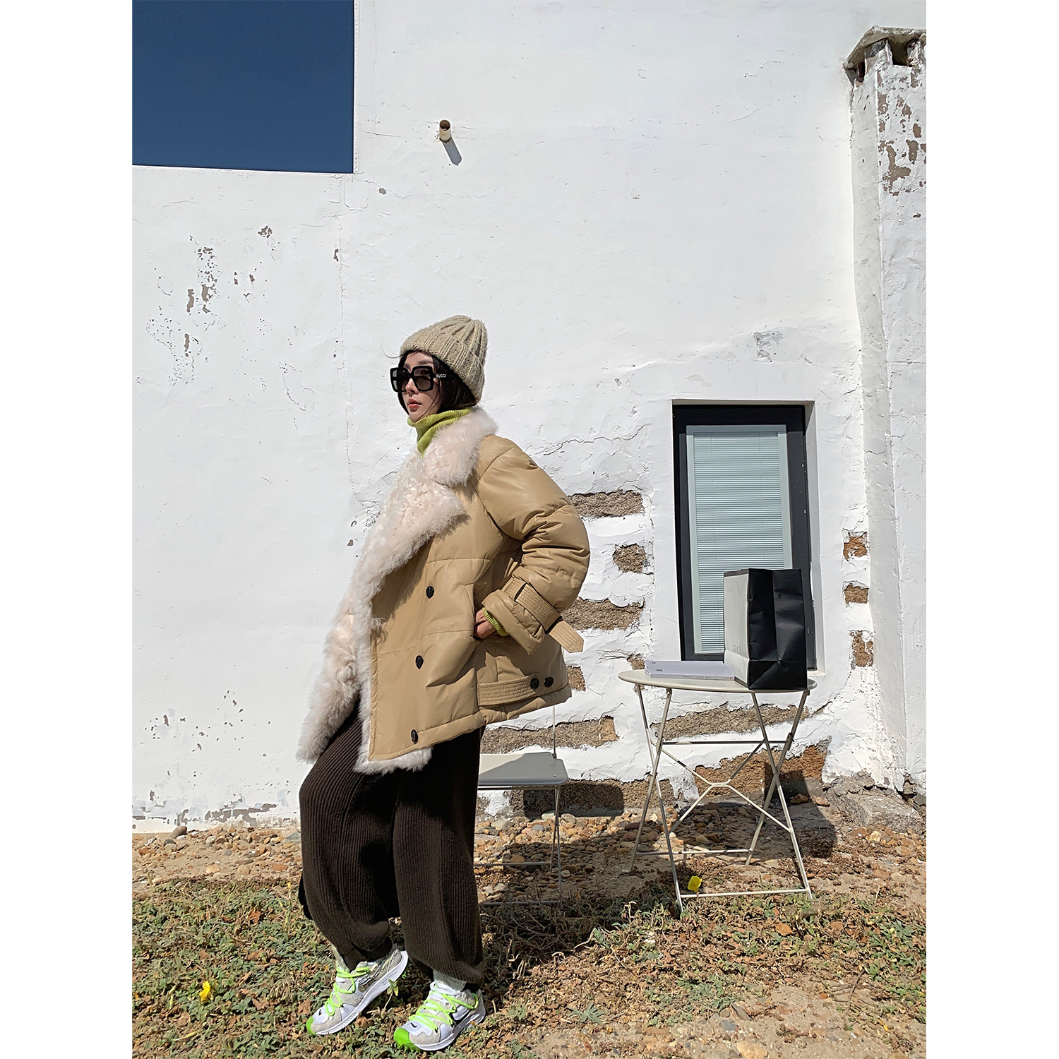 Pay Wise Nyumoon Rabbit 90 White Duck Suede Locomotive Wind Dermis sheep Pippi down jacket Female thickened down jacket
