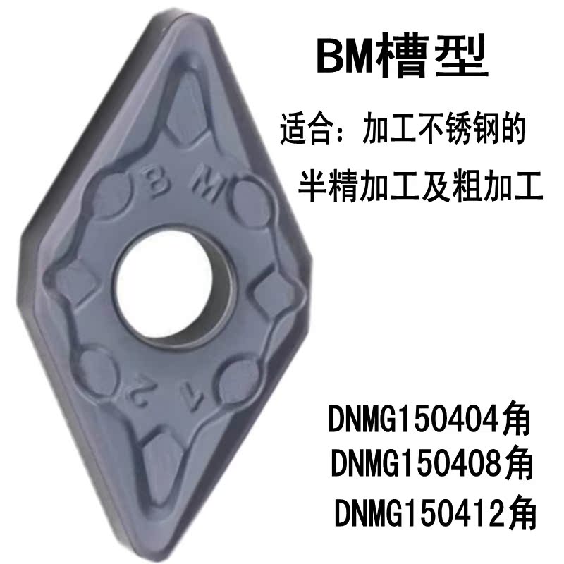 DNMG150404-BM (half-finely-machined) DNMG150408-BM (half-finely machined) DNMG150412-BM (semi-finely coarse)